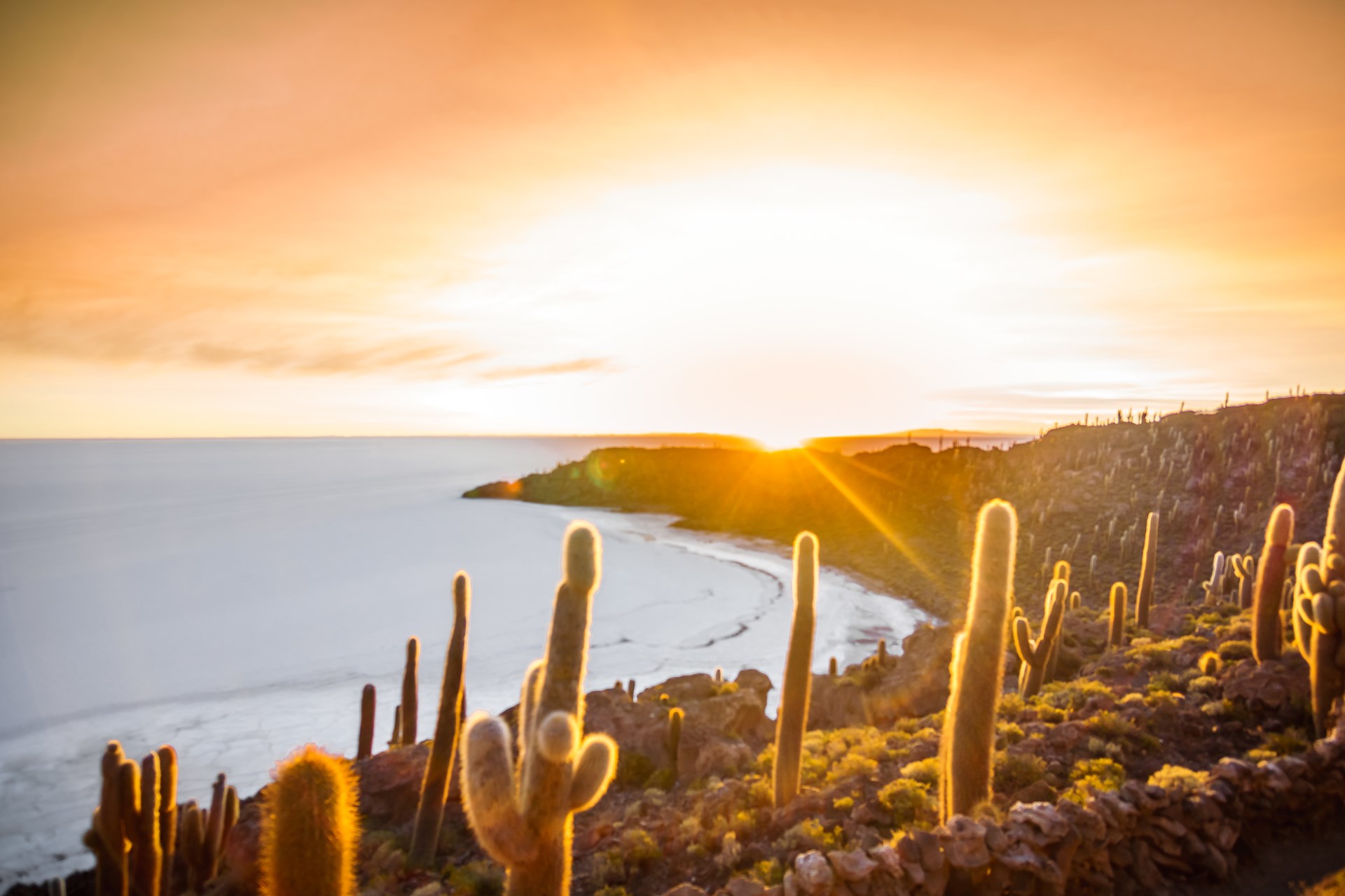 Históricamente, el Salar de Uyuni fue parte de un lago salado también llamado «mar interior prehistórico», el lago Minchin, que comprendía la más grande parte del sur-oeste boliviano. Con más de 12.000 km², considerado como el desierto de sal más grande del mundo, que conoce como frontera las cordilleras y el cielo. ¡El Salar muestra imágenes únicas! Paisajes y efectos ópticos producidos por la radiación entre otros fenómenos sorprendentes. Se puede encontrar islas vírgenes y desérticas que cobijan cactus enormes y flora única. Una sucesión de paisajes naturales y formas caprichosas, es un lugar que cautiva y embruja a los visitantes.