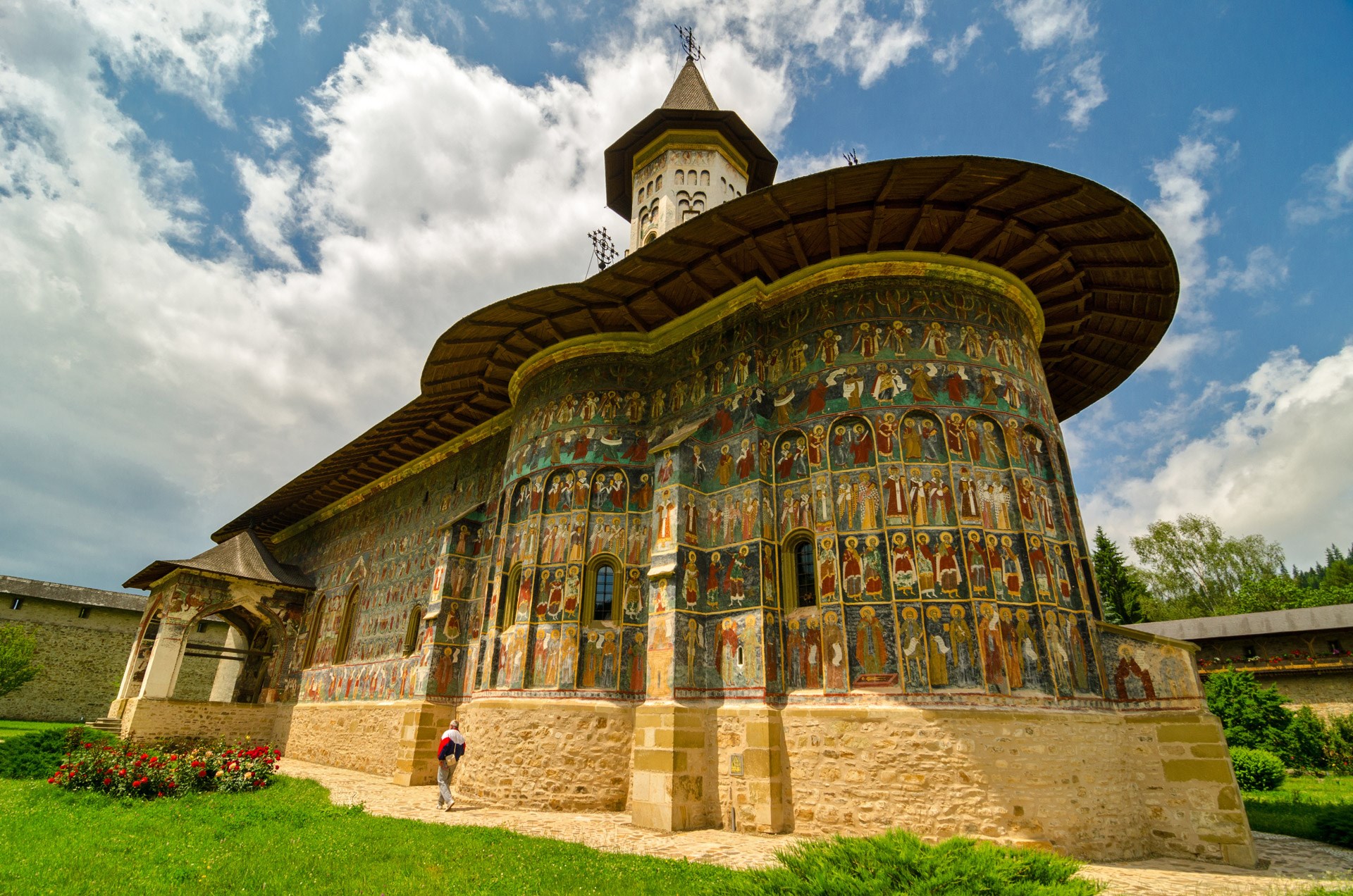 Salida hacia Bucovina, la región de la Moldova cuyo nombre resulta en el 1774 significando el pueblo cubierto de bosques de hayas. Famosa por sus hermosos paisajes, Bucovina es aún más conocida por sus monasterios con frescos construidos entre los siglos XV-XVI bajo los principales príncipes moldavos como Esteban el Grande y su hijo Petru Rares. Visita de los monasterios con frescos de Bucovina que pertenecen al Patrimonio Mundial de UNESCO. El monasterio Voronet del 1488, nombrado la Capilla Sixtina del Este de Europa y considerado la joya de Bucovina por el famoso ciclo de frescos externos que decoran la iglesia, el más famoso siendo “El Juicio Universal”. Almuerzo libre. Continuar con la visita del monasterio Sucevita, (1582-84) conocido por el importante fresco “La Escalera de las Virtudes” y por su imponente cinta mural. Los muros de la iglesia, tanto en el externo como en el interno, fueron cubiertos por frescos enseñando episodios del Antiguo y Nuevo Testamento, realizados en el 1601. Sucevita fue una residencia principesca, más allá de un complejo monacal fortalecido dedicado a la producción de manuscritos y de libros impresos. Parada a Marginea, un pueblo conocido por los hallazgos arqueológicos de cerámica negro que data de la Edad del Bronce, reproducido hoy por parte de un laboratorio local. Continuación con la visita del monasterio Moldovita, del 1532, rodeado de fortalezas y con frescos externos. Los frescos externos realzan la huella moldava para obtener el máximo realismo en las escenas de vida cuotidiana, humanizando los personajes. Continuación hasta Gura Humorului.
